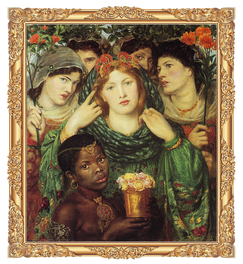 Известно, что Россетти вдохновлялся работами Эдуарда Мане, а именно — картиной «Олимпия». Оттуда позаимствован прием контрастного изображения персонажей. Все внимание на главной героине-невесте: у нее выразительные черты лица и яркие рыжие волосы, в то время как у остальных девушек они темные.