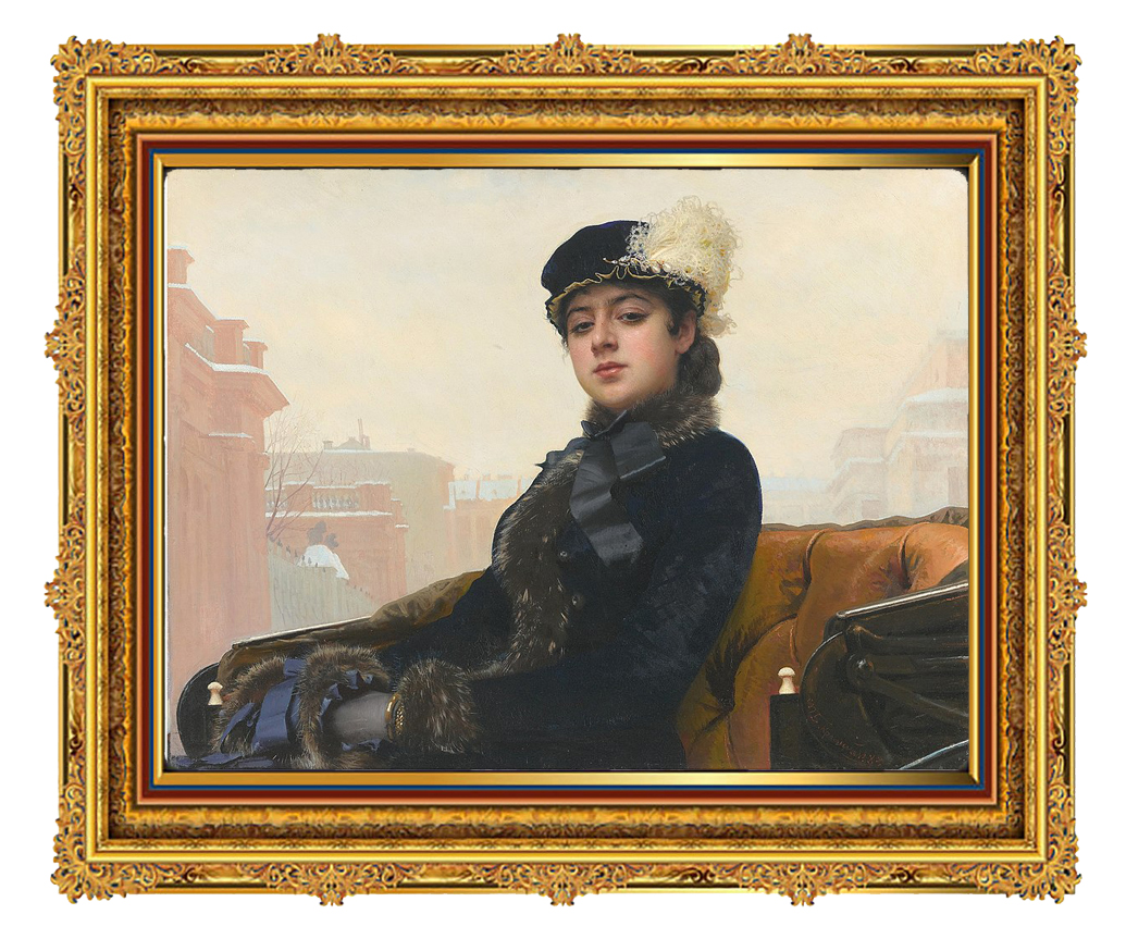 Девушка на картине едет в коляске одна — в то время дамы себе такого не позволяли. Так художник показал, что «Неизвестная» не принадлежала к высшему обществу. Скорее всего, она была куртизанкой или содержанкой. Плюс, она одета слишком выразительно для своего времени: темно-синяя шуба с меховой отделкой украшена лентами, муфта, тонкие перчатки, массивные золотые браслеты, берет с белыми перьями и жемчугом.