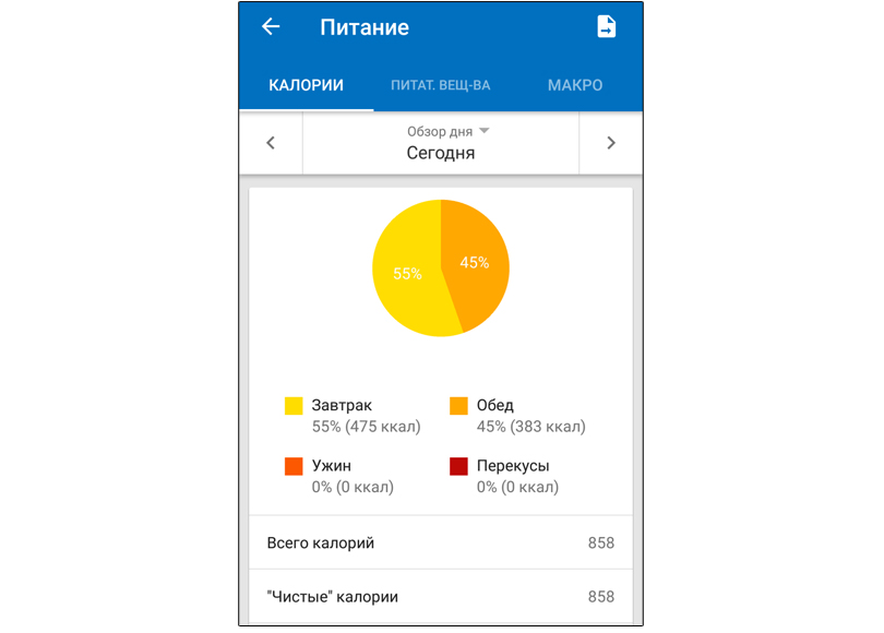 Самое простое приложение из списка. В нем можно считать общее количество калорий в тех продуктах, которые вы потребляете и расходуете.