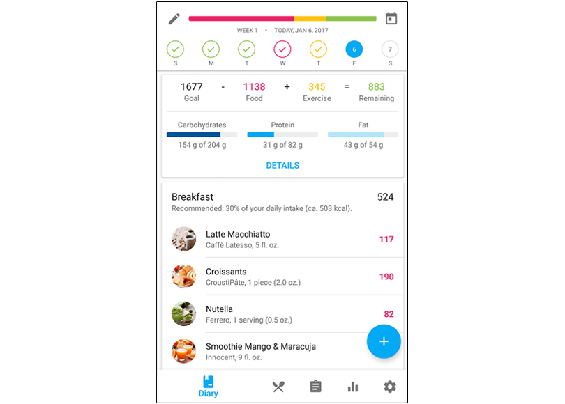 Не забывайте вести дневник питания, где можно планировать и отслеживать каждый прием, а также сканировать штрих-коды, чтобы легко считать калории.
