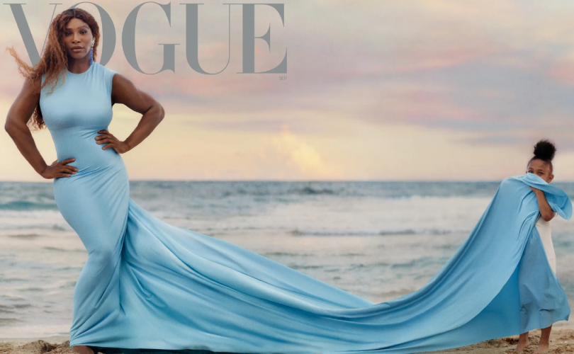 40-летняя теннисистка Серена Уильямс стала лицом сентябрьского номера американского Vogue. На главном снимке она предстала на фоне заката у моря в голубом платье Balenciaga и украшениях Bulgari. Рядом с ней — 4-летняя дочь Алексис, малышка держит шлейф платья мамы, закрывая им лицо. Получилось очень красиво.