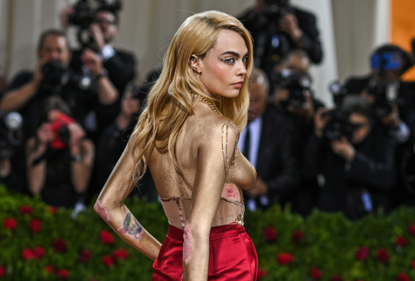 Бал костюмов Met Gala 2022 прошел еще неделю назад, но о нем продолжают говорить. Сначала все обсуждали повышенный спрос на корсеты после выхода Беллы Хадид и Билли Айлиш (читайте об этом здесь), теперь говорят о псориазе Кары Делевинь. Дело в том, что Кара пришла на мероприятие в красном брючном костюме Dior, но потом сняла жакет, оставшись без верха одежды. Ее тело было покрыто только золотой краской, а грудь закрывали стикини. Однако, хорошо посмотрев на фото, на локтях модели можно заметить красные пятна. Их визажисты не стали закрашивать (как и татуировки), и, видимо, этим Кара хотела поддержать всех девушек, у которых такое же заболевание.