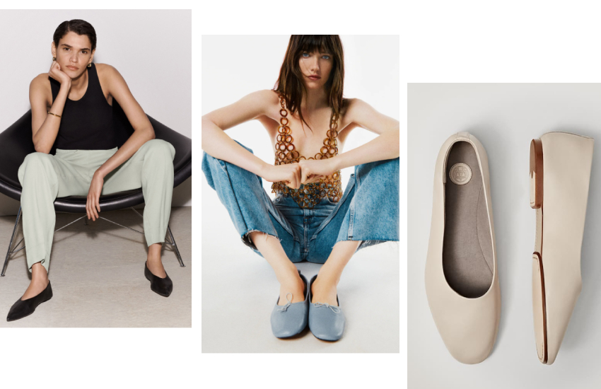 На фото слева направо: балетки COS, 10 990 руб., балетки Zara, 3299 руб., балетки Massimo Dutti, 7990 руб.