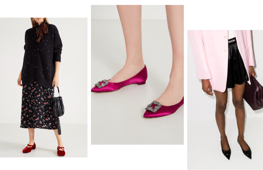 А если хотите выделяться, обратите внимание на коллекцию Manolo Blahnik с балетками, повторяющими дизайн легендарных туфель, или на линейку Miu Miu с бархатными балетками, напоминающими пуанты балерины.
