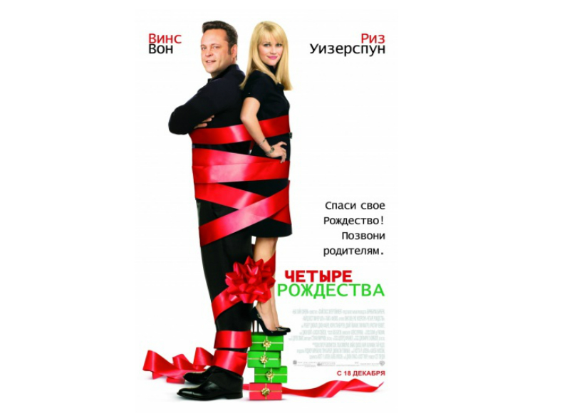 Когда казалось, что все приличные рождественские фильмы засмотрены до дыр, в подборке на ivi случайно обнаружилась комедия «Четыре Рождества». Первый аргумент к просмотру – актерский состав. Главные роли играют Винс Вон и Риз Уизерспун. В фильме они изображают пару, которая всячески избегает семейные встречи в декабре, предпочитая заниматься серфингом на Бали и кататься на лыжах в Австрии. Еще одна их общая черта – снобизм по отношению к любым семейным развлечениям! Но обстоятельства складываются таким образом, что это Рождество они вынуждены провести со своими семьями…