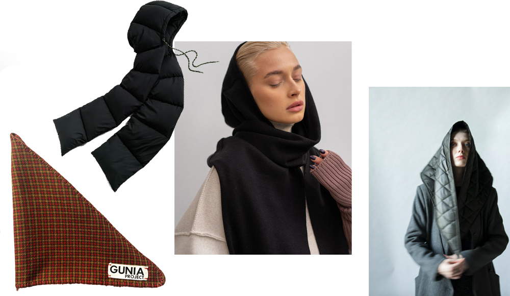 Для тех, у кого комфорт в приоритете, придумали другие аксессуары – шарфы-капюшоны и капоры. Выглядит моднее и женственнее балаклавы, но также отлично греет и спасает в ветреную погоду. В масс-маркет за такими аксессуарами идти не обязательно, российские бренды в этом году постарались и выпустили разные варианты платков, капоров и теплых панам, которые предлагают носить с пуховиками и шубами. Нам нравится все!