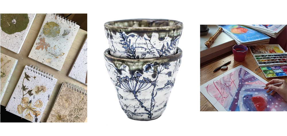 Набор «Кофейный букет» (800 руб.) – кофейная пара выполнена вручную из белой глины с использованием оттисков растений. Ее автор – один из воспитанников школы «Благое Дело», где взрослые люди с инвалидностью обучаются ремеслам, получают работу и занимаются творчеством – театром, музыкой и артом. Готовые работы попадают на сайт fromural.ru, создатели которого сотрудничают с несколькими инклюзивными мастерскими в России.